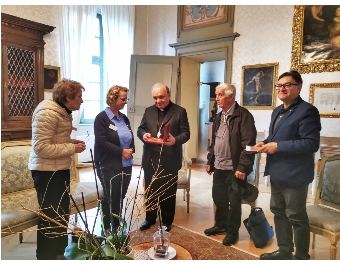 In Alba wurden wir vom Bischof Marco Brunetti und der Kulturreferentin der Stadt Alba, Katharina Pasini, empfangen und überreichten den Flyer des Vereins mit Informationen über die Märtyrer von Dachau in italienischer Sprache. Das Interesse an der Arbeit des Vereins in Deutschland war sehr groß. Als Gastgeschenk hatten wir ein Fotobuch erstellt mit allen Aktivitäten des Vereins seit 2014 zu Ehren des Dachaumärtyrers und diese Fotobücher überreichten wir ebenfalls.