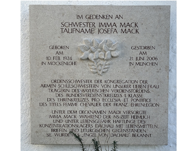 In einer Ansprache kurz nach dem Kriegsende würdigte Kardinal Faulhaber die Verdienste von Schwester Maria Imma Mack. Er hob hervor, dass die junge Botin in das Dunkel und die abgrundtiefe Not des Konzentrationslagers wagemutig Trost und Hilfe brachte, ohne an die Gefahr und ihre eigene Sicherheit zu denken. Bei einer persönlichen Begegnung hatte er sie einmal „eine Tarcisia unserer Tage“ genannt – eine Anspielung auf den Heiligen Märtyrer Tarcisius, einen zwölfjährigen Ministranten, der nach der Überlieferung im 3. Jahrhundert heimlich konsekrierte Hostien zu gefangenen Christen brachte, die auf ihre Hinrichtung warteten. In Anerkennung ihrer Verdienste erhielt Schwester Imma Maria viele Ehrungen. Darunter sind die Auszeichnung der Stadt München „München leuchtet“, die Aufnahme als als Ritterin in die französische Ehrenlegion, weil sich unter den von ihr versorgten Häftlingen auch viele Franzosen befanden, der Bayerische Verdienstorden, das Bundesverdienstkreuz I. Klasse und der päpstliche Ehrenpreis, das Ehrenkreuz Pro Ecclesia et Pontifice. Aber die schönste schönste Ehrung stammt von der Schulschwester Beatrix Mayrhofer, der langjährigen ehemaligen Präsidentin der Vereinigung der Frauenorden Österreichs: „Ohne Schwester Imma wäre Karl Leisner vielleicht nie Priester geworden. Sie hat als junge Frau das Unmögliche möglich gemacht – mit einem Fahrrad, einem offenen Herzen und einer großen Portion Mut.“ Schwester Maria Imma Mack starb 2006 im Alter von 82 Jahren in ihrem Kloster in München und wurde auf dem Münchner Ostfriedhof beigesetzt.