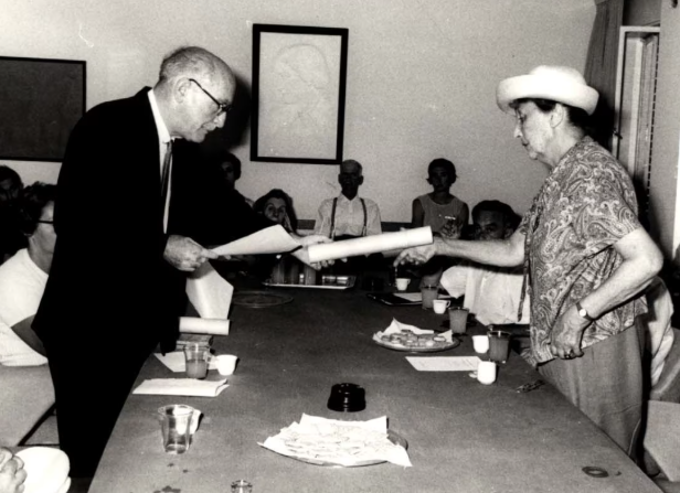blazerurkunde: Louise Blazer empfängt ihre Urkunde als Gerechte unter den Völkern. Foto: Yad Vashem